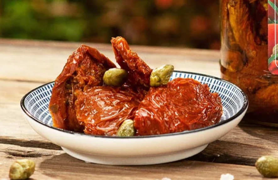 Ingredientes: Tomates secos, aceite de semillas de girasol, alcaparras, vinagre de vino blanco, sal, especias y hierbas aromáticas.